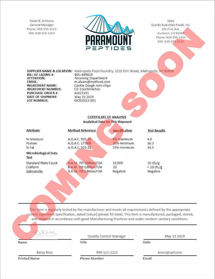 *Issued under Paramount Peptides, the authorized testing and distribution partner.