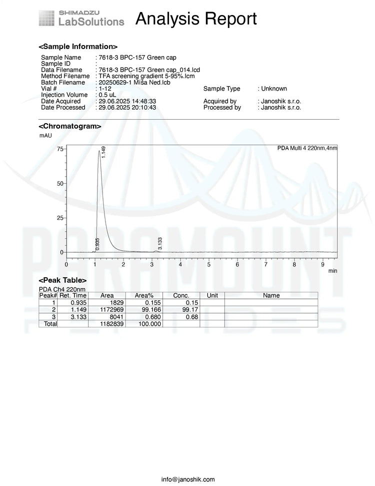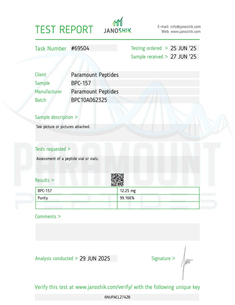 *Issued under Paramount Peptides, the authorized testing and distribution partner.