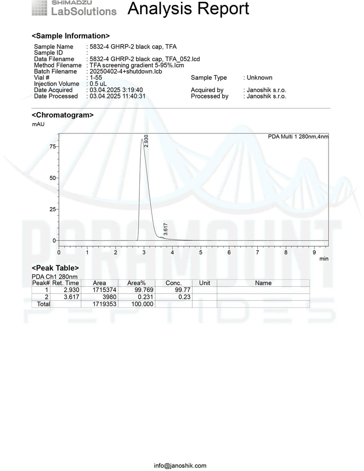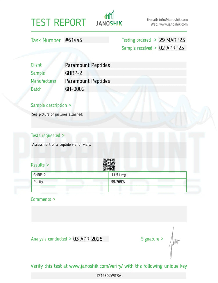 *Issued under Paramount Peptides, the authorized testing and distribution partner.