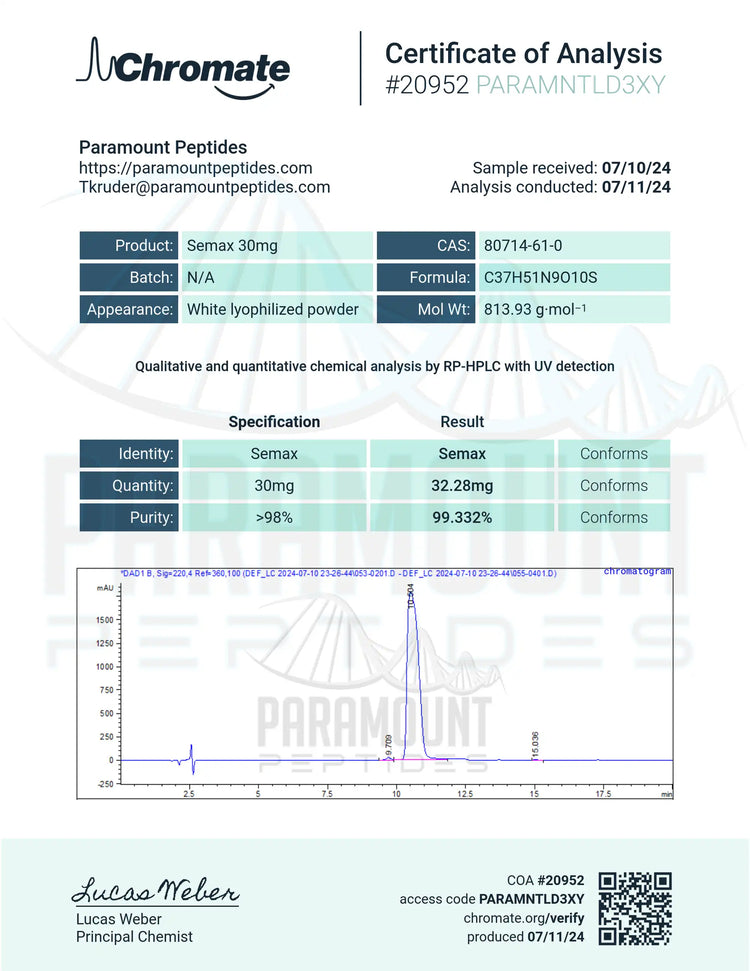 *Issued under Paramount Peptides, the authorized testing and distribution partner.