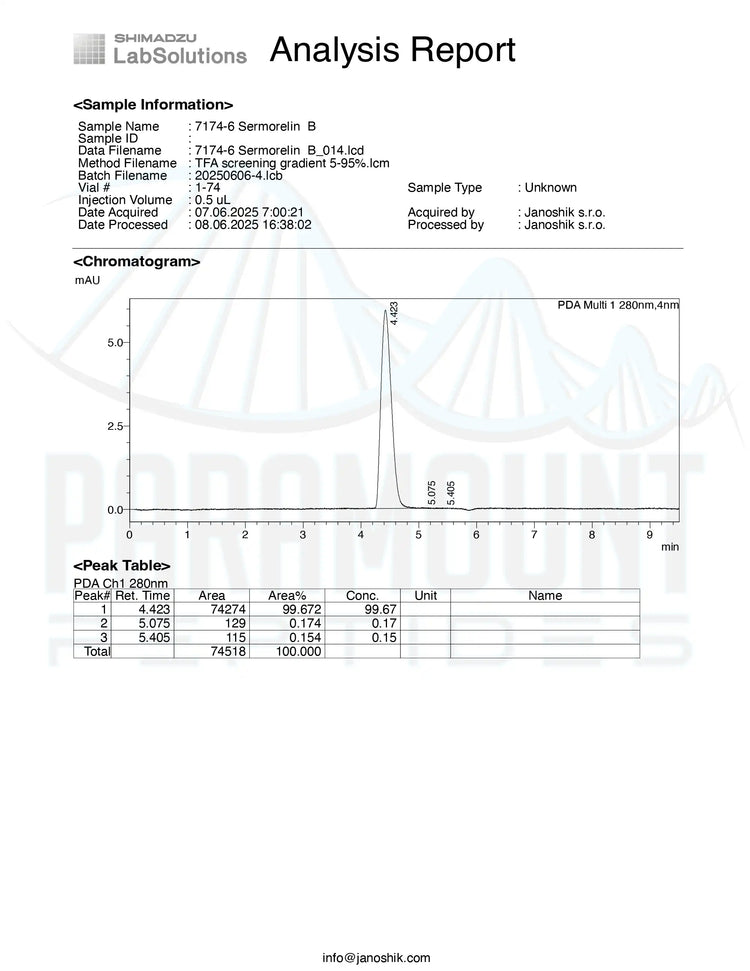 *Issued under Paramount Peptides, the authorized testing and distribution partner.