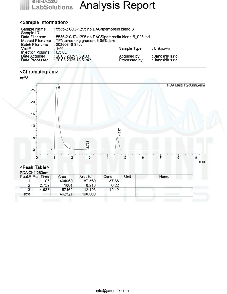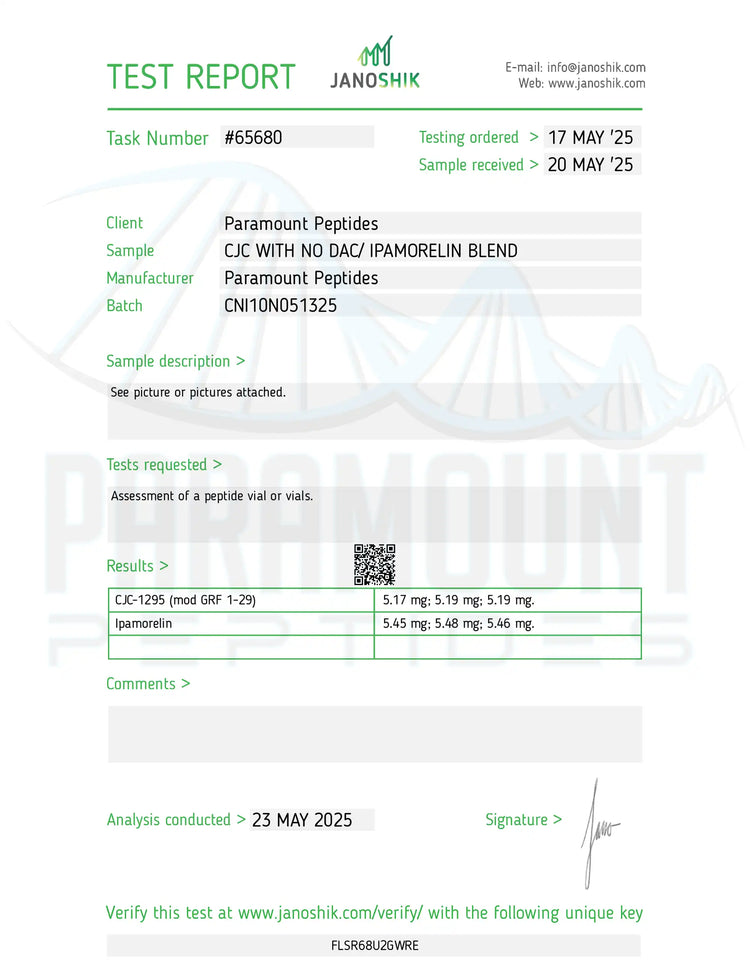 *Issued under Paramount Peptides, the authorized testing and distribution partner.