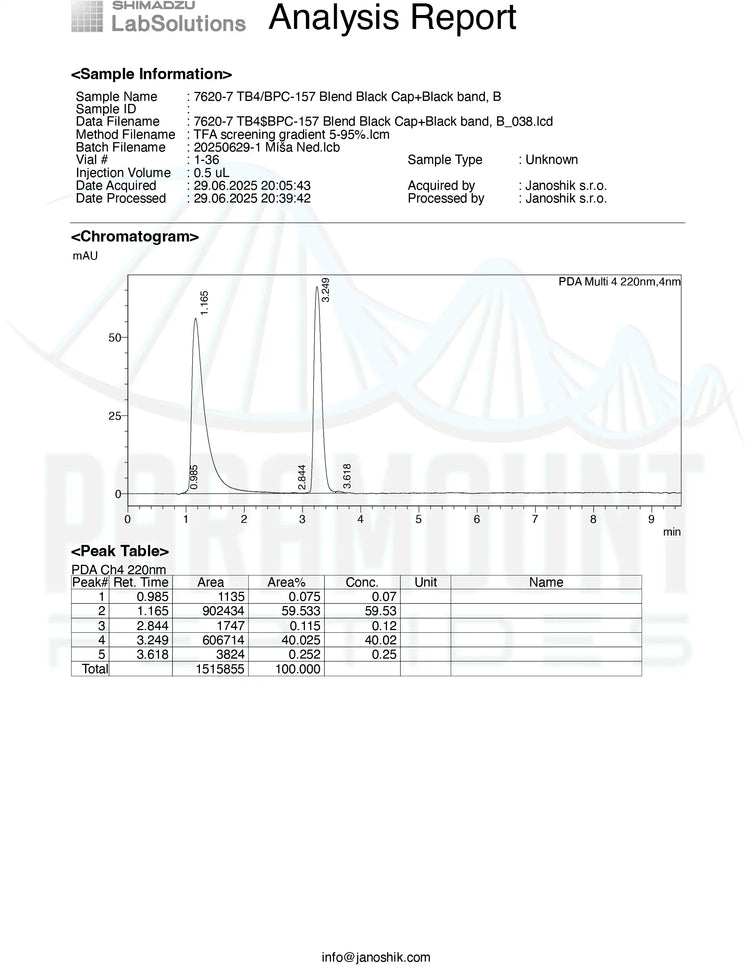 *Issued under Paramount Peptides, the authorized testing and distribution partner.